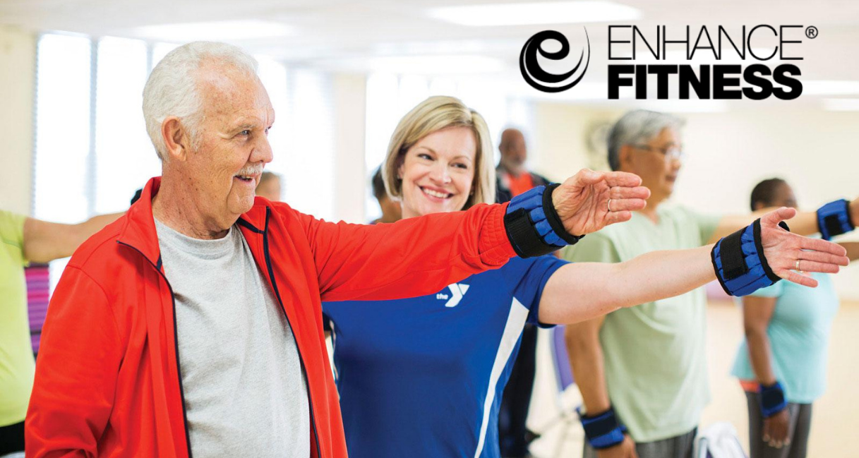Enhance® Fitness is an evidence-based group exercise program that helps older adults increase physical fitness and maintain independence. The program focuses on cardiovascular endurance, strength, balance, and flexibility through safe, fun, and adaptable movements.